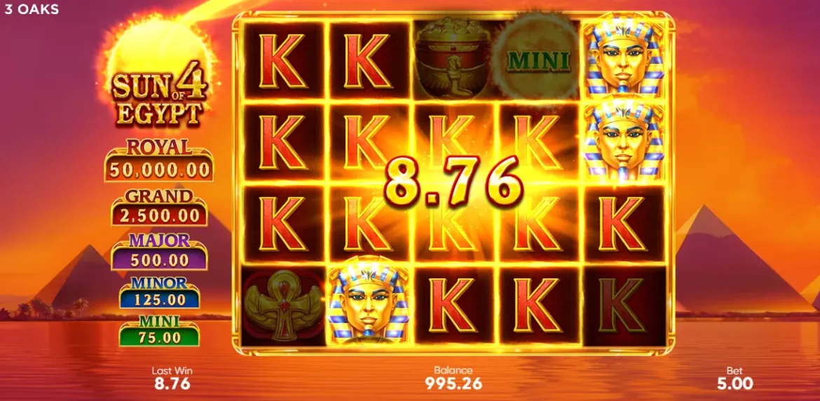 Sun of Egypt 4 features five progressive jackpots: Mini, Minor, Major, Grand, and the coveted Royal Jackpot. Each jackpot is tied to the Hold & Win and Super Bonus features, with specific symbols representing each prize. The Mini, Minor, Major, and Grand jackpots can be won by landing their respective symbols during bonus rounds, while the Royal Jackpot is awarded for filling the entire grid with symbols during the Hold & Win or Super Bonus Game. The jackpots add an extra layer of excitement and give every spin the potential to deliver a life-changing payout. The progressive nature and variety of jackpot levels ensure that both casual players and high rollers have something to chase, making Sun of Egypt 4 a truly rewarding slot adventure.